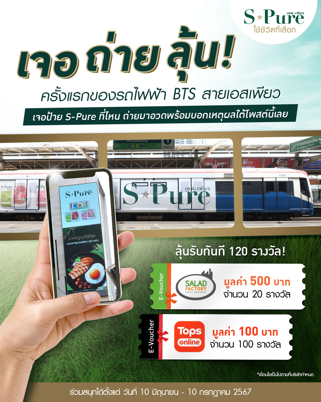 โดยผู้โชคดีต้องยืนยันสิทธิ์ พร้อมแสดงตัวตนผ่านทาง Inbox ของ เพจ Facebook S-Pure Brand ภายในวันที่ 23 กรกฎาคม 2567 หากไม่ยืนยันสิทธิ์ภายในระยะเวลาที่กำหนดถือว่าสละสิทธิ์